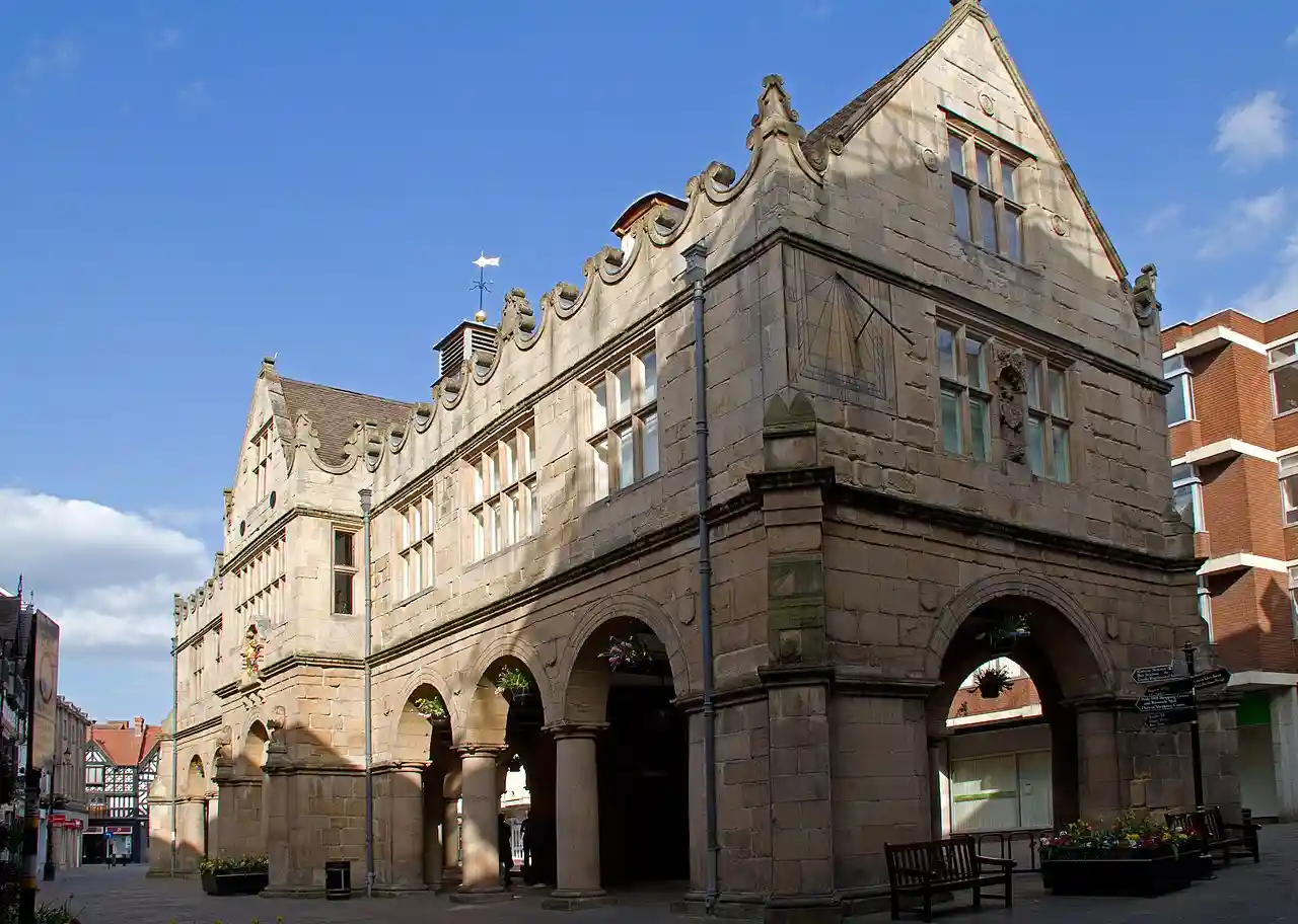 The Old Market Hall (in recent years branded as the "OMH") is an Elizabethan building situated in the town centre of Shrewsbury, the county town of Shropshire, England. It is a Grade I listed building. Read more on Wikipedia