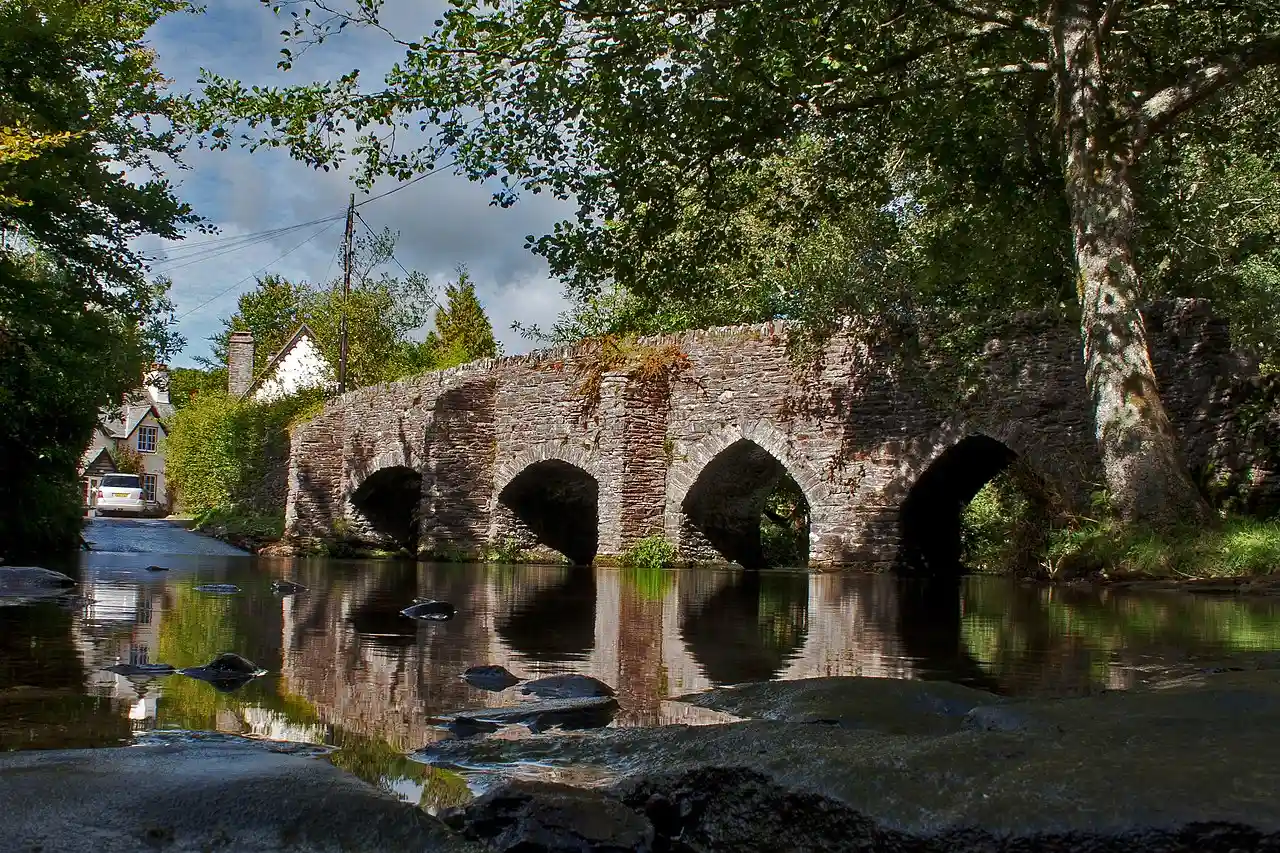 Bury Bridge at Bury in the parish of Brompton Regis within the English county of Somerset is a medieval packhorse bridge. It has been scheduled as an ancient monument and Grade II* listed building. Read more on Wikipedia