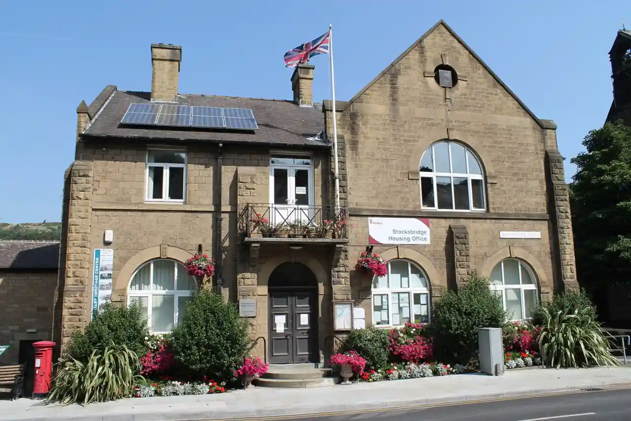 Stocksbridge Town Hall is a municipal building in Manchester Road in Stocksbridge, a town in South Yorkshire in England. The town hall, which was previously the offices and meeting place of Stocksbridge Urban District Council, is now the home of Stocksbridge Town Council as well as other community organisations. Read more on Wikipedia