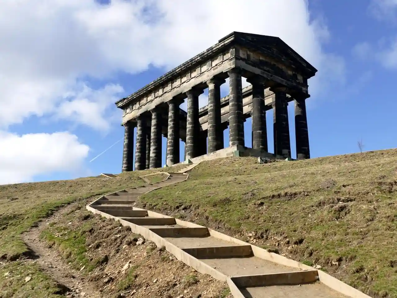 The Penshaw Monument (officially the Earl of Durham's Monument) is a memorial in the style of an ancient Greek temple on Penshaw Hill in the metropolitan borough of the City of Sunderland, North East England. It is located near the village of Penshaw, between the towns of Washington and Houghton-le-Spring in historic County Durham. The monument was built between 1844 and 1845 to commemorate John Lambton, 1st Earl of Durham (1792–1840), Governor-General of British North America and author of the Durham Report on the future governance of the American territories. Owned by the National Trust since 1939, it is a Grade I listed structure. Read more on Wikipedia