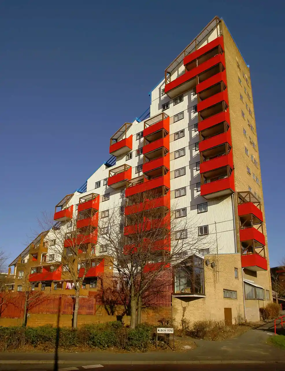 The Byker Wall is a long, unbroken block of 620 maisonettes in the Byker district of Newcastle upon Tyne, England. They were designed by Ralph Erskine and constructed in the 1970s. The wall is just part of the estate, which in total covers . Read more on Wikipedia