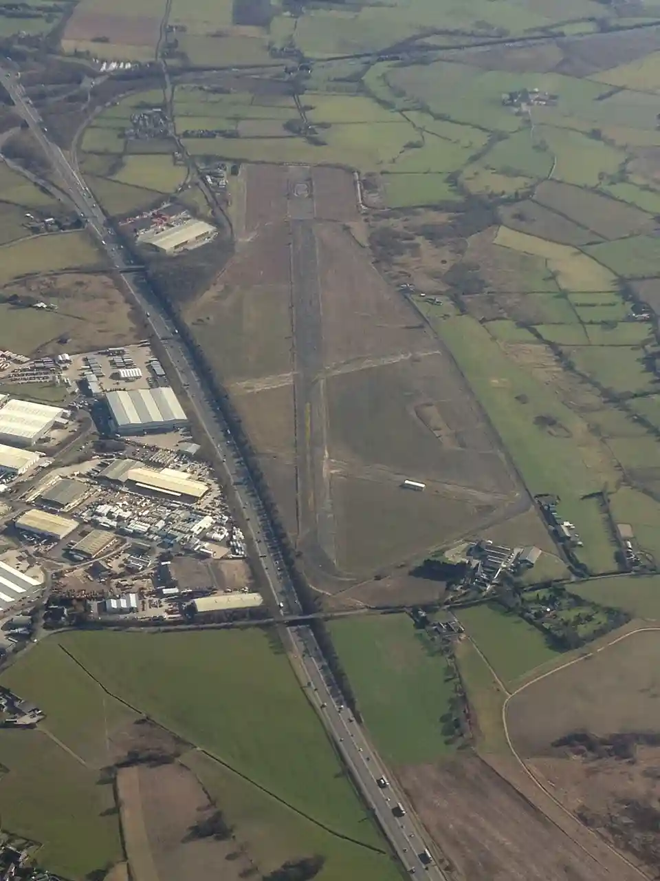 Royal Naval Air Station Stretton (RNAS Stretton, also known as HMS Blackcap), was an airfield situated in the village of Appleton Thorn, though named for the neighbouring village of Stretton, south of Warrington, in Cheshire, England. Although the main runway remains, the northerly part of the airfield is now HM Prison Thorn Cross, and an industrial estate. In the 1970s, the M56 motorway was built across the former air station. Read more on Wikipedia