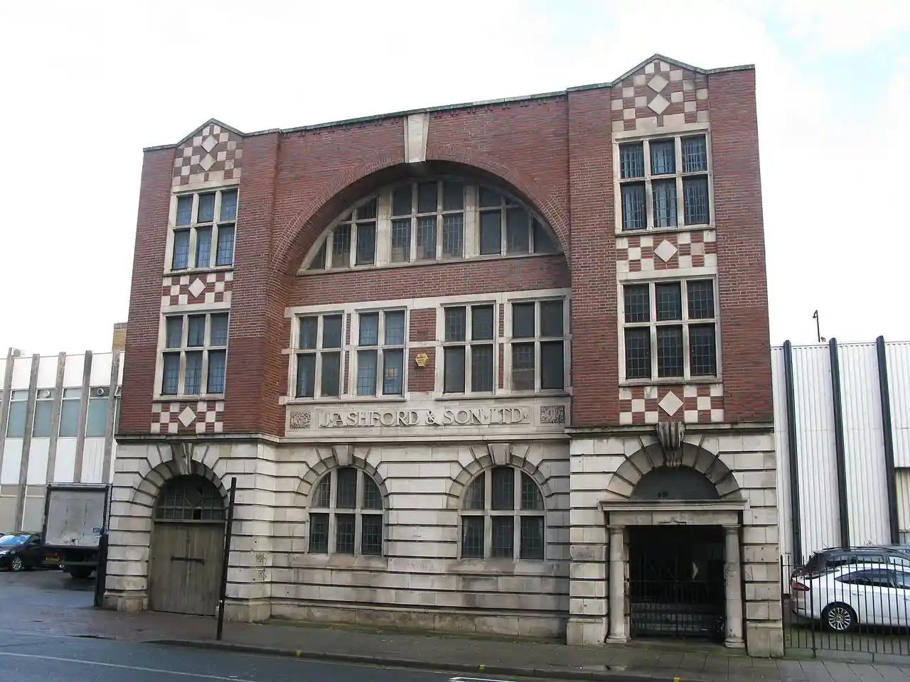 The former Ashford & Sons factory in Birmingham, England is a Grade II* listed building in Arts & Crafts style. Read more on Wikipedia