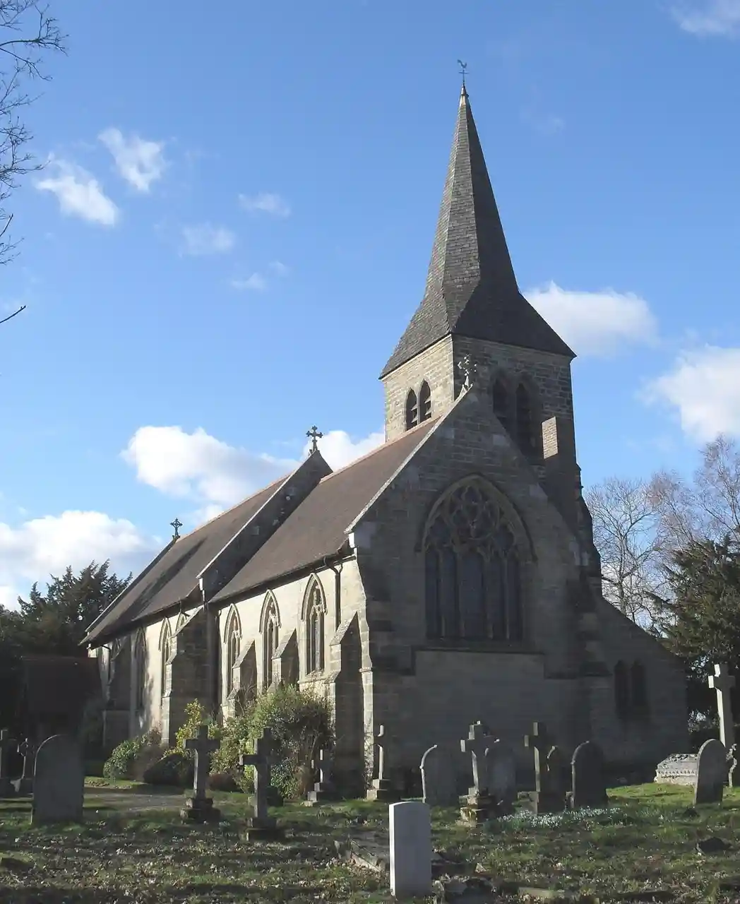 All Saints Church is an Anglican church in the hamlet of Highbrook in Mid Sussex, one of seven local government districts in the English county of West Sussex. The tiny settlement, in the parish of West Hoathly, was distant from the parish church in that village; two wealthy sisters accordingly funded the construction of a new church to serve the local population. Richard H. Carpenter and Benjamin Ingelow's stone building, with a prominent spire, opened in 1884 and was allocated its own parish. The "handsome" church, designed in the 14th/15th-century style of the Gothic Revival, has been listed at Grade II by English Heritage for its architectural and historical importance. Read more on Wikipedia