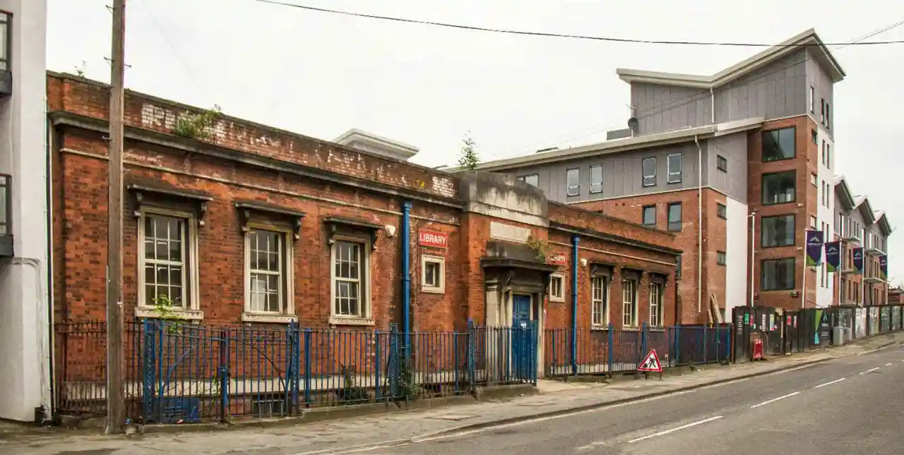 The Burley Branch Library was open on Cardigan Road, Burley, Leeds, West Yorkshire, between 1926 and 2016. It was established on vacant industrial land adjacent to a printing works and railway depot by Leeds City Council, and was majority financed by Carnegie. It is built to a design by Gilbert Burdett Howcroft. The Council closed the library in February 2016 due to its poor condition and being surplus to operational requirements. The building was listed at Grade II in 2017 and remains awaiting redevelopment. Read more on Wikipedia