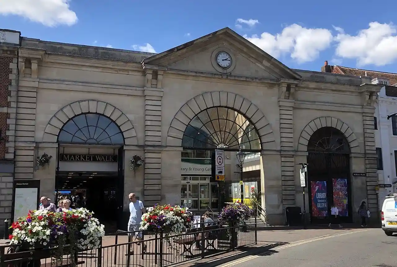 The Corn Exchange, formerly the Market Hall, is a commercial building in the Market Place, Salisbury, Wiltshire, England. The structure, which accommodates a small shopping mall, a public library and an art gallery, is a Grade II listed building. Read more on Wikipedia