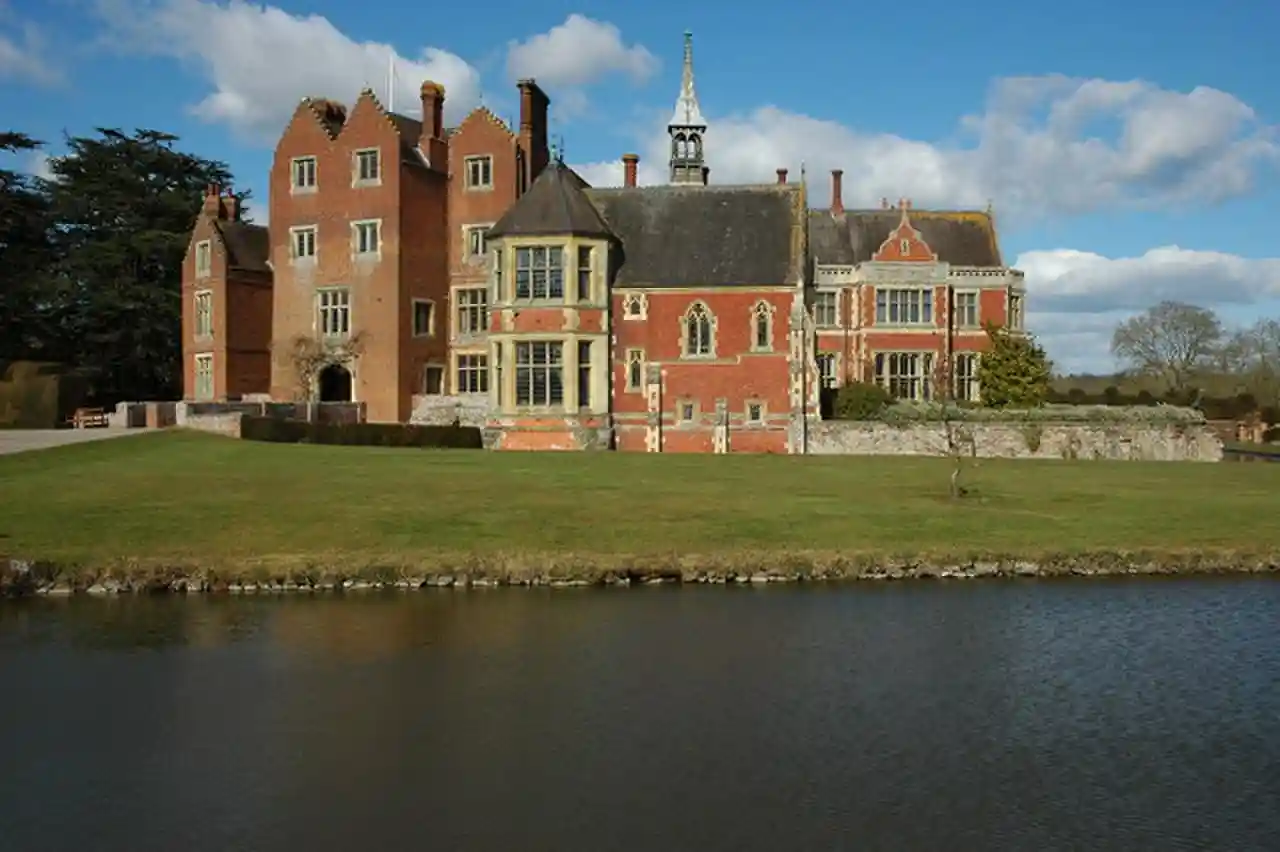 Madresfield Court is a country house in Malvern, Worcestershire, England. The home of the Lygon family for nearly six centuries, it has never been sold and has passed only by inheritance since the 12th century; a line of unbroken family ownership reputedly exceeded in length in England only by homes owned by the British Royal Family. The present building is largely a Victorian reconstruction, although the origins of the present house are from the 16th century, and the site has been occupied since Anglo-Saxon times. The novelist Evelyn Waugh was a frequent visitor to the house and based the family of Marchmain, who are central to his novel Brideshead Revisited, on the Lygons. Surrounded by a moat, the Court is a Grade I listed building. Read more on Wikipedia