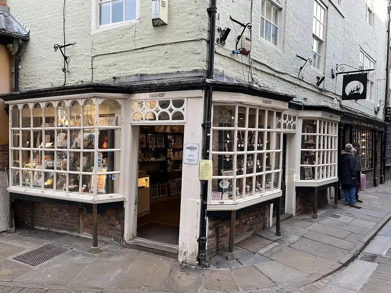 1 The Shambles (also known as Barghest) is an historic building in York, England. A Grade II listed building, standing at the corner of The Shambles and Newgate, part of the building dates to the 14th century, but it was renovated in the 17th and 18th centuries. Its Newgate façade faces King's Square, and this has the functioning doorway to the building. It is this side of the building, which is two storeys, that dates to the 14th century. It adjoins 4A King's Square to form an L-shape. The western side is three storeys, dating to the second half of the 18th century. Read more on Wikipedia