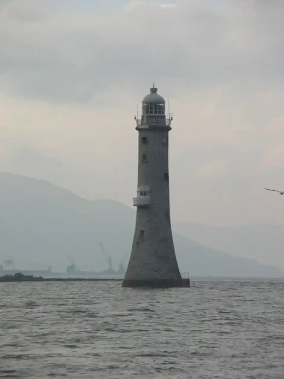 The Haulbowline Lighthouse is an active 19th century lighthouse. Described as an "elegant, tapering stone tower" it is located at the entrance to Carlingford Lough, near Cranfield Point in County Down, Northern Ireland. Read more on Wikipedia