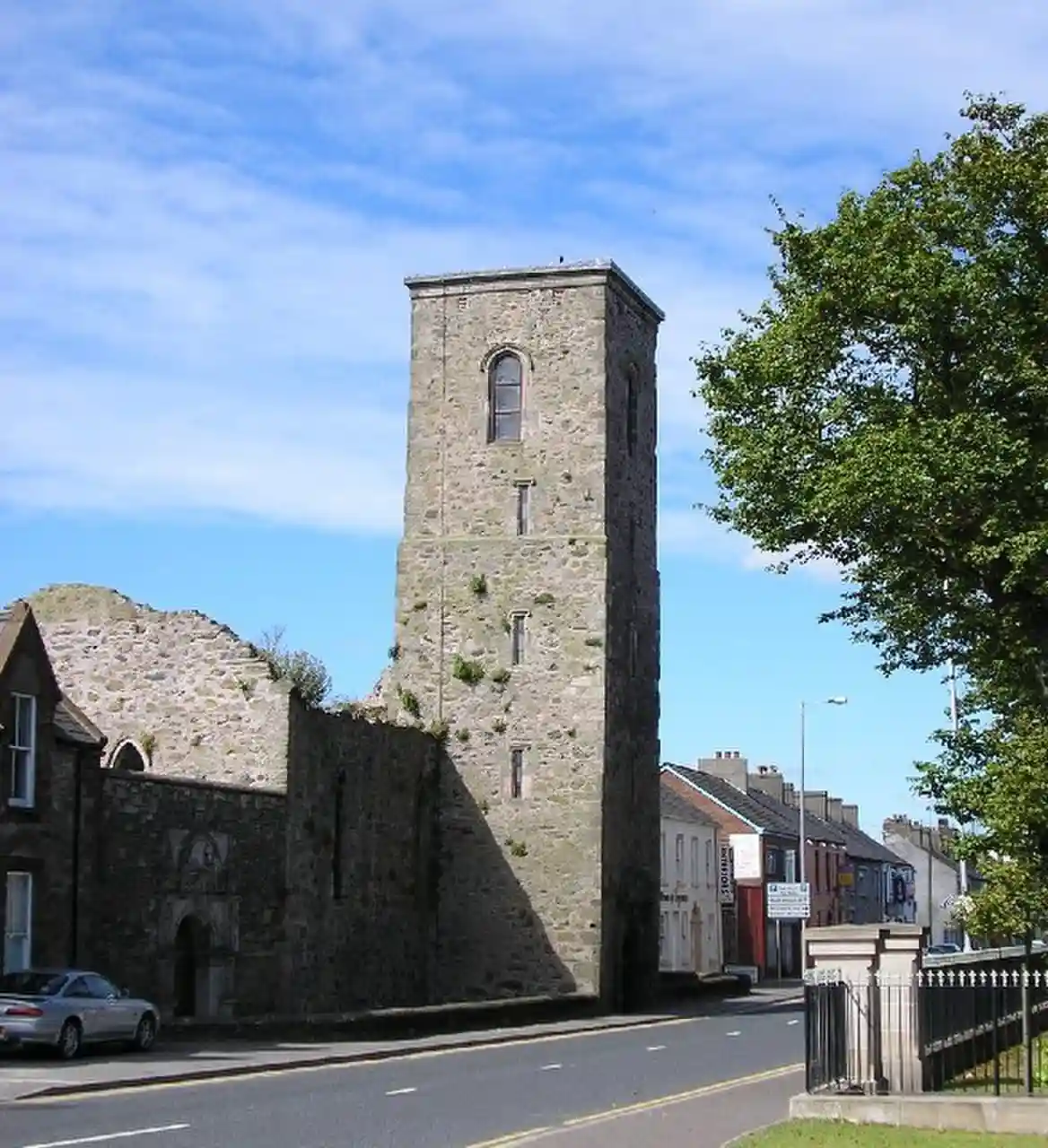 Newtownards Priory was a medieval Dominican priory founded by the Savage family around 1244 in the village of Newtownards, County Down, Northern Ireland. Only the lower parts of the nave and two blocked doors in the south wall leading to a demolished cloister, survive from the period of the priory's foundation. The upper parts of the nave date from a 14th-century rebuilding and the western extension and the north aisle arcade were undertaken by the de Burgh family. Read more on Wikipedia