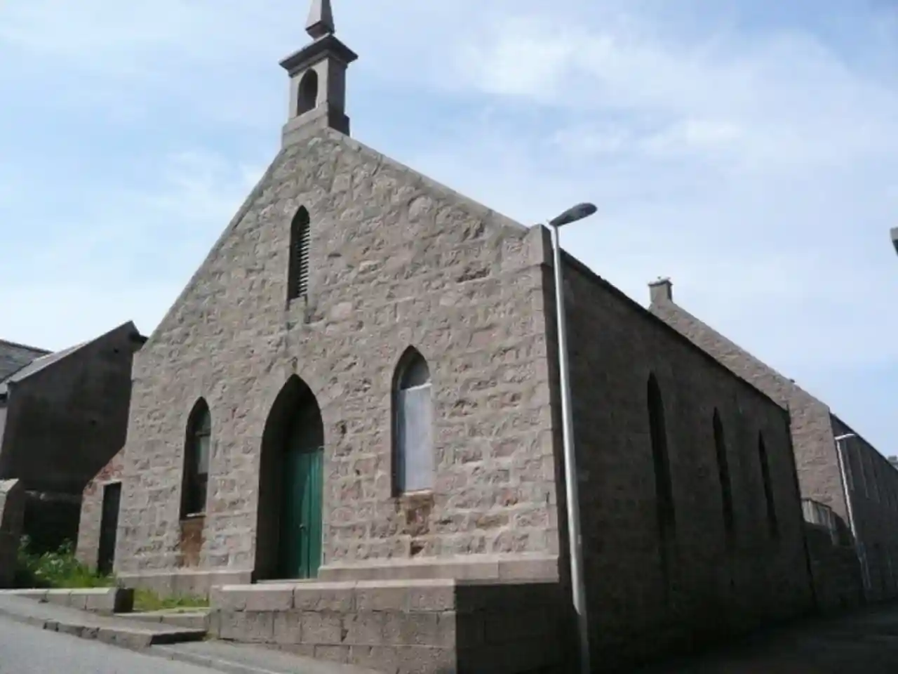 Brethren Meeting House is a Category C listed building at 26 Gordon Street in Boddam, Aberdeenshire, Scotland. It was formerly a late-Victorian-era Wesleyan church. A bellcote is on the gable, without a bell but with a "spiky" finial in place. Read more on Wikipedia