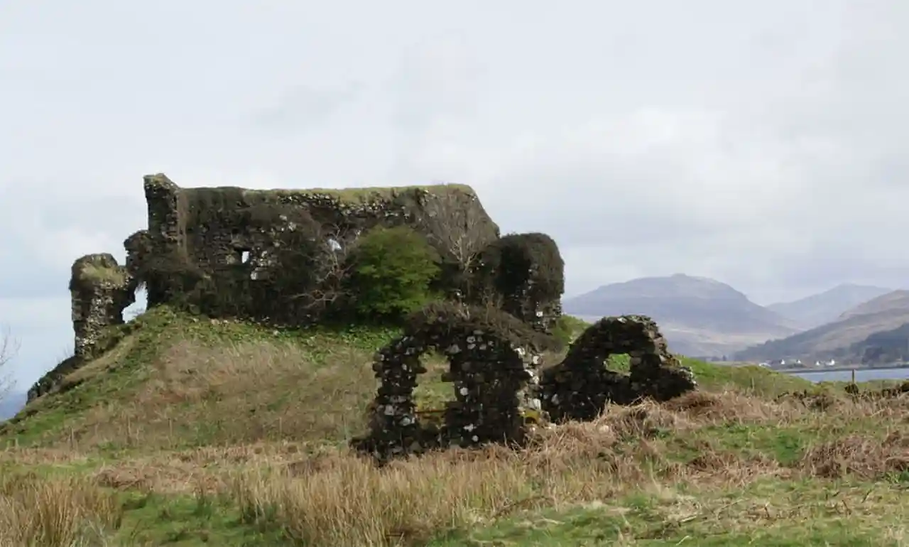 Aros Castle, also known as Dounarwyse Castle, is a ruined 13th-century castle near Salen on the Isle of Mull, Scotland. The castle overlooks the Sound of Mull. Read more on Wikipedia