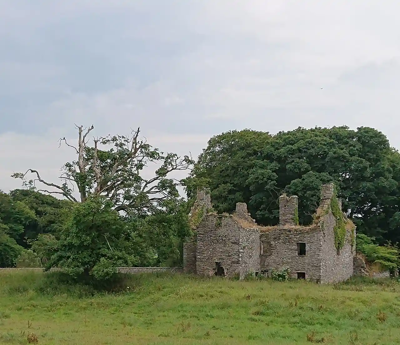 Borgue Old House is a ruined Y-plan house, about east of Borgue in Dumfries and Galloway, Scotland. Built in 1680, but probably incorporating the fabric of an older building, its large main block has two projecting wings at either end of its south face; another wing in the middle of the north face probably contained the stairway, but this is no longer present. Each of the two main stories has three interconnecting rooms, on in each of the wings on the south face, and one in the main block. The main block would also have had an attic, but is now roofless. Read more on Wikipedia
