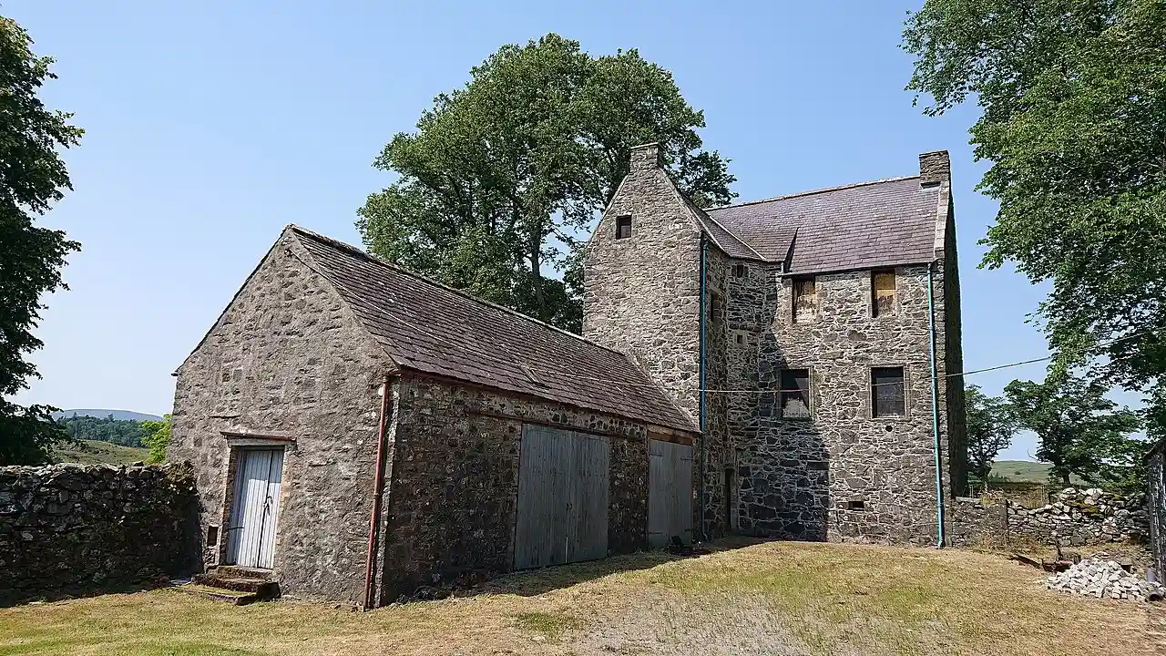 Earlstoun Castle, sometimes spelled Earlston Castle, is a derelict tower house near St John's Town of Dalry in Dumfries and Galloway, Scotland. Built in the late sixteenth century, it was home to members of the Gordon family, including William Gordon of Earlston who was killed at the battle of Bothwell Bridge. It is unusual for a tower house of its age for its lack of defensive arrangements: it has no gun loops, its roof is without a parapet or corner turrets, and it lies in open ground without natural defences. Read more on Wikipedia