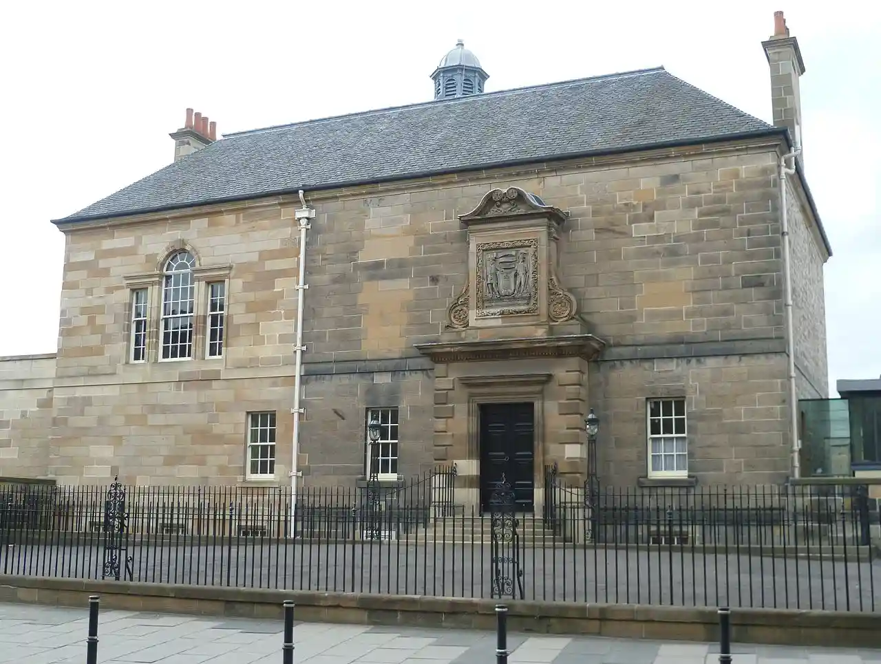 The Archers' Hall is the club house of the Royal Company of Archers, the Sovereign's Bodyguard in Scotland. It is located at 66 Buccleuch Street in the Southside of Edinburgh, and has been used by the company for over 230 years. Building commenced on 15 August 1776, and was completed in 1777 to designs by Alexander Laing. When the foundation stone was laid in 1776, two lines of Latin were inscribed on a plate which was set in the stone. These lines, beginning , were taken from: Read more on Wikipedia