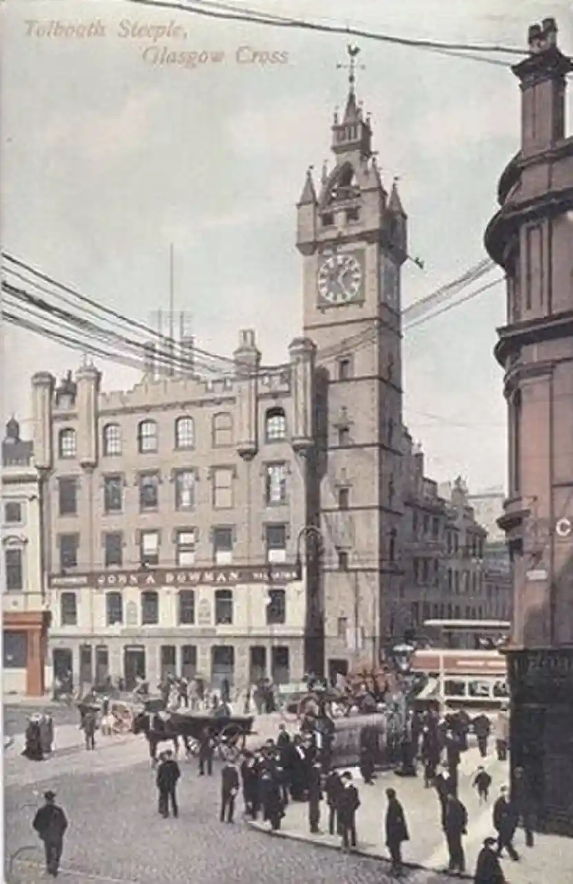The Glasgow Tolbooth was a municipal structure at Glasgow Cross, Glasgow, Scotland. The main block, which was the meeting place of the Royal Burgh of Glasgow, was demolished in 1921 leaving only the steeple standing. The steeple is a Category A listed building. Read more on Wikipedia