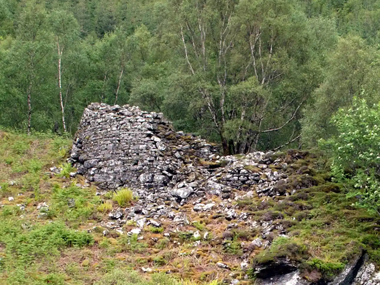 Dun Grugaig (or Caisteal Chonil) is a D-shaped dun, or "semi-broch", located about 7 kilometres southeast of the village of Glenelg, Highland, in Scotland (). Read more on Wikipedia