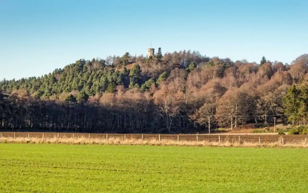 The Knock of Alves is a small wooded hill that lies to the west of Elgin in Moray, Scotland, rising to above ordnance datum. Its summit is marked by York Tower, a 3-storey octagonal folly erected in 1827 to commemorate Prince Frederick, the Duke of York; and the Forteath Mausoleum, built in 1850 as the burial place of 7 members of the Forteath family of the nearby house of Newton. Read more on Wikipedia