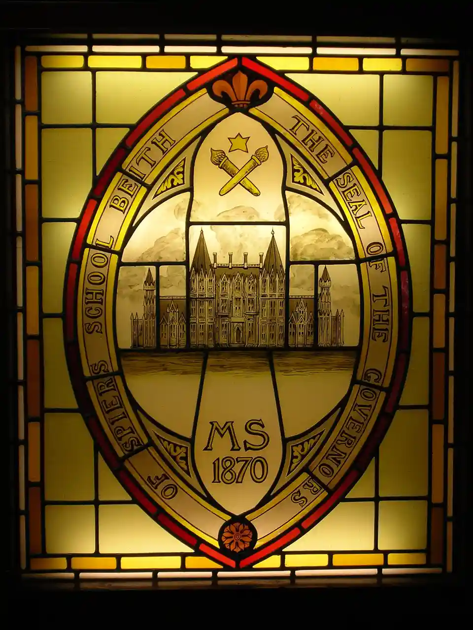 Spier's School (NS352533), at Beith, in North Ayrshire, Scotland was opened in 1888 and closed in 1972. The school, now demolished, was built using Ballochmyle red sandstone and was reminiscent of the ancient Glasgow University. The school motto was 'Quod verum tutum' (What is true is safe).Spiers School. 1888 - 1968. The gardens and woodlands are open to the public at all times. Read more on Wikipedia