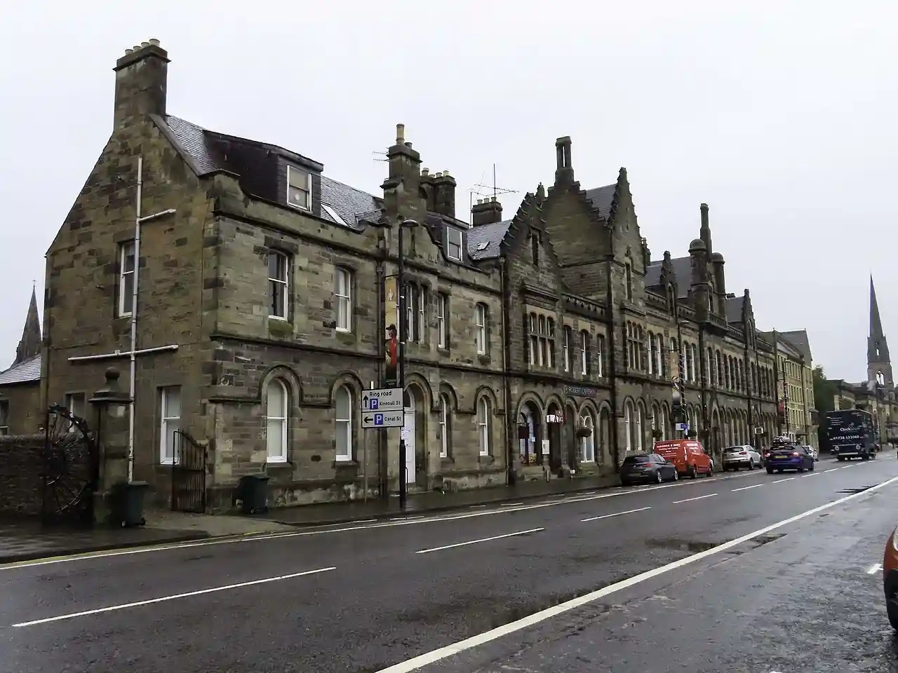 62–72 Tay Street (also known as the County Buildings) is an historic row of buildings in Perth, Scotland. Designed by local architect John Young, the building is Category B listed, dating to 1881. Standing on Tay Street, the building was originally the home of the Perthshire Society of Natural Science Museum, constructed in memory of Sir Thomas Moncreiffe, 7th Baronet, a past president of the society. The museum housed two exhibits: a local (or regional) collection (which contained a collection of the animals, plants and rocks to be found in Perthshire and the basin of the Tay) and The Type (or Index) Museum, which illustrated the main types of animals, plants and rocks.Official Guide to Perth and Its Neighbourhood by the Tramway Car Routes – Perth Town Council (1907), p. 18 Read more on Wikipedia