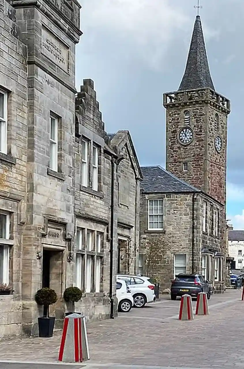 Kinross Town Hall forms part of a complex of municipal buildings in the High Street, Kinross, Perth and Kinross, Scotland. The town hall, which has been converted for residential use, is a Category B listed building. Read more on Wikipedia