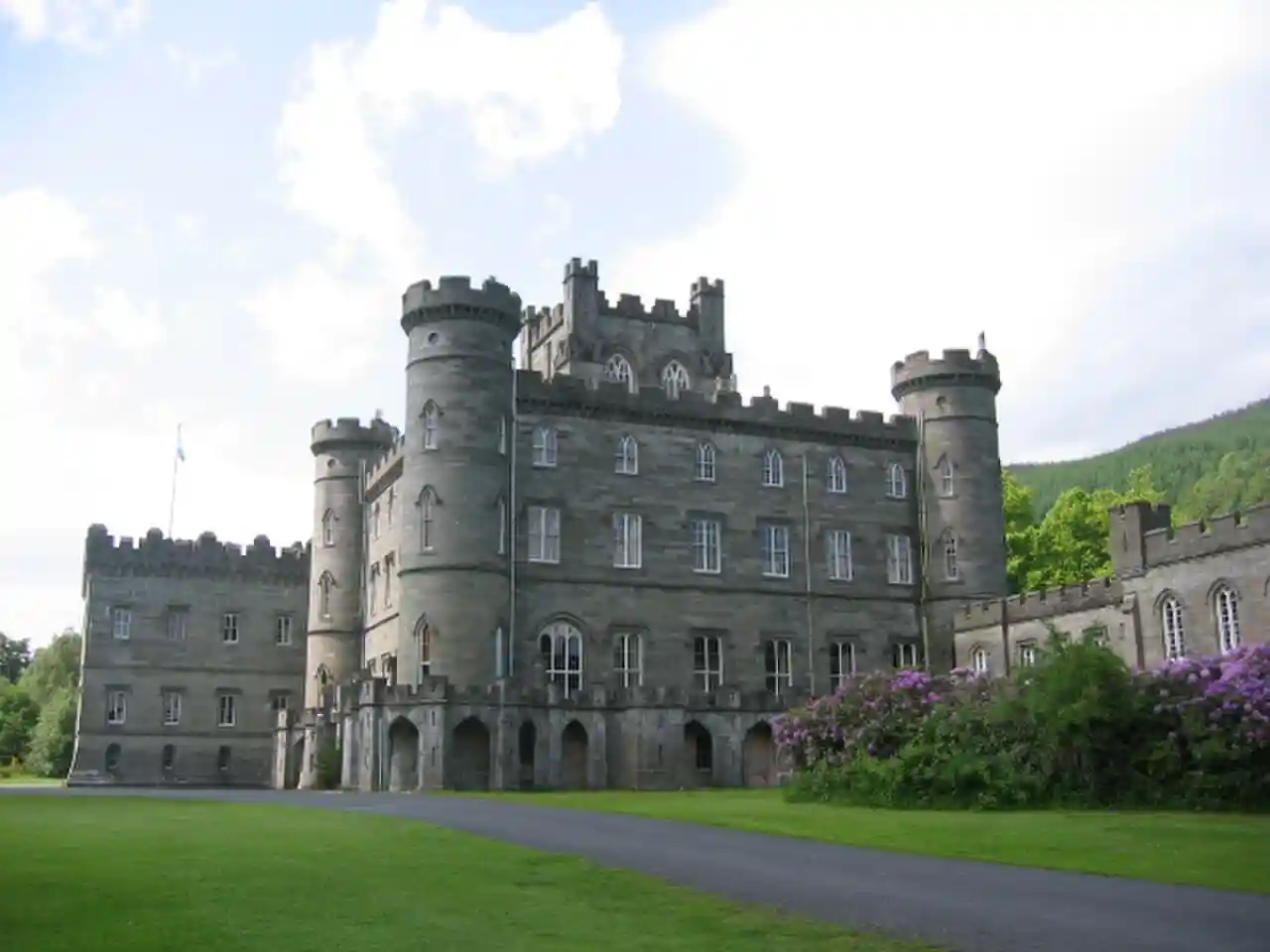 Taymouth Castle is situated to the north-east of the village of Kenmore, Perth and Kinross, in the Highlands of Scotland, in an estate which encompasses . It lies on the south bank of the River Tay, about from Loch Tay, in the heartland of the Grampian Mountains. Taymouth is bordered on two sides by mountain ranges, by Loch Tay on the third and by the confluence of the rivers Lyon and Tay on the fourth. Read more on Wikipedia