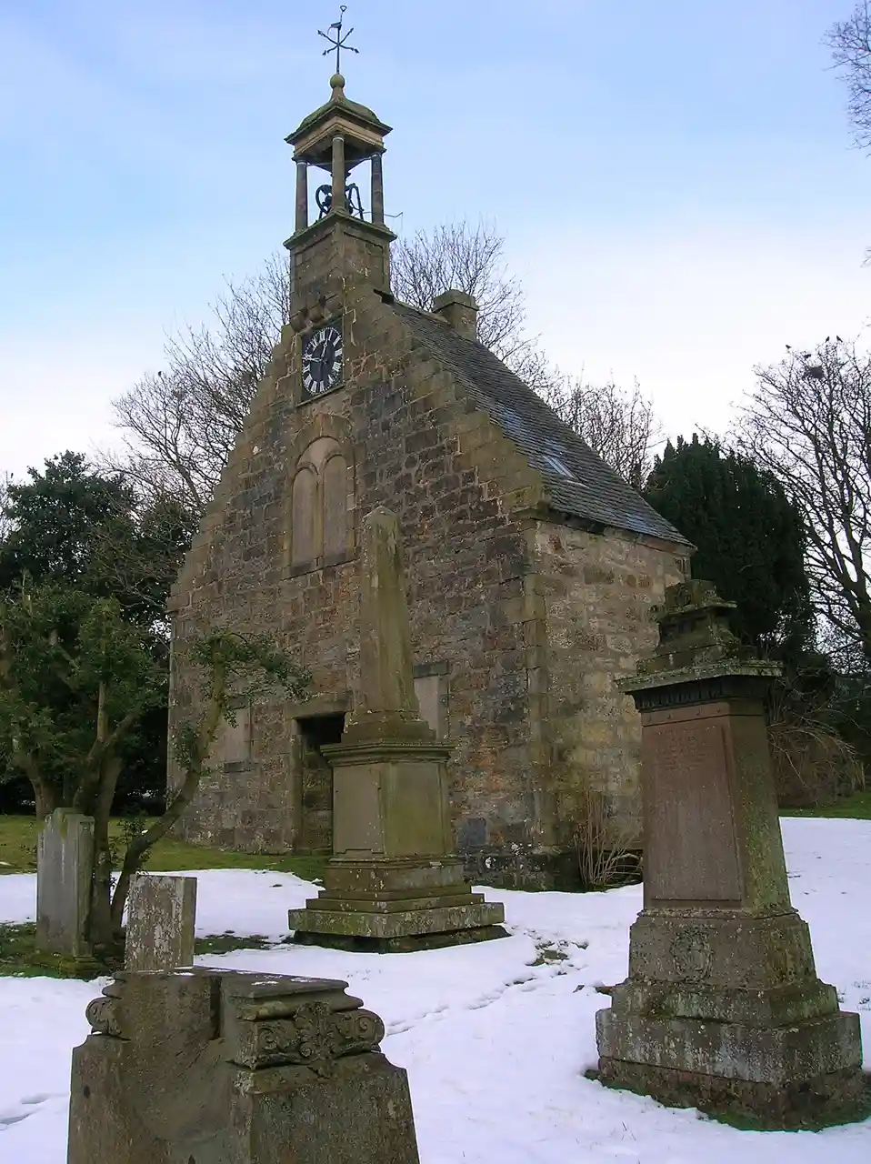 St John's Kirk, also known as St Winnock's Church and, colloquially, Auld Simon (Old Simon), is a former church building in Lochwinnoch, Renfrewshire, Scotland. It dates to 1729, and is now Category B listed. Only the southwest gable and a single bay of the structure remains, the rest likely torn down around the date the new church was constructed in 1808. Read more on Wikipedia