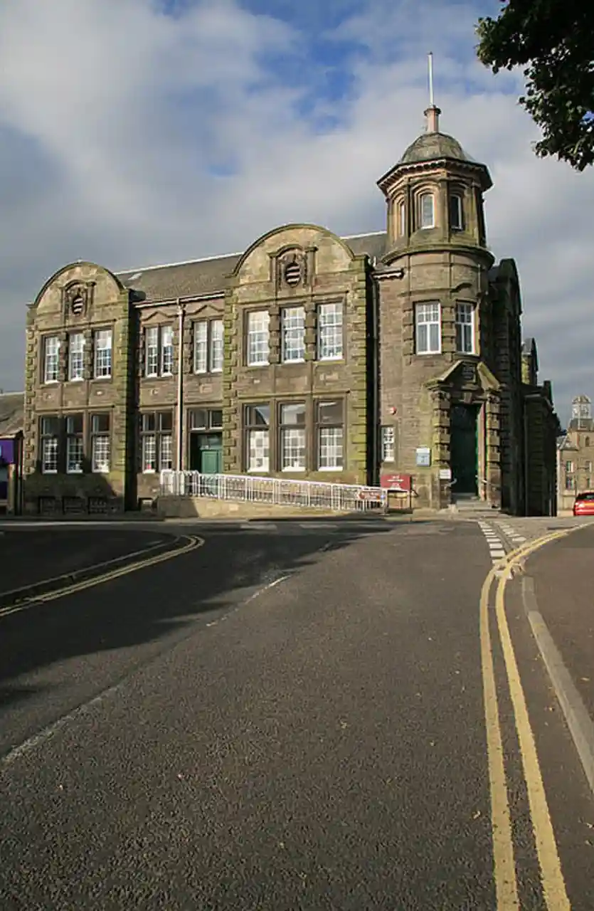 Hawick Library is housed in the building built in 1904 in Hawick and it was one of the many libraries funded by Andrew Carnegie. The library is a Category B listed building. The library, designed by J N Scott and Alexander Lorne Campbell, is a 2-storey, rectangular-plan Free Style library with a prominent corner entrance tower and round-arched gables. The library is described as "a good example of early-20th-century civic architecture." Read more on Wikipedia