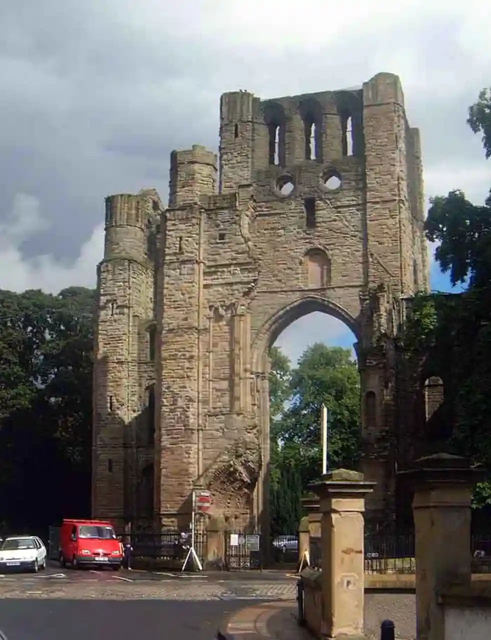 Kelso Abbey is a ruined Scottish abbey in Kelso, Scotland. It was founded in the 12th century by a community of Tironensian monks first brought to Scotland in the reign of Alexander I. It occupies ground overlooking the confluence of the Tweed and Teviot waters, the site of what was once the Royal Burgh of Roxburgh and the intended southern centre for the developing Scottish kingdom at that time. Kelso thus became the seat of a pre-eminently powerful abbacy in the heart of the Scottish Borders. Read more on Wikipedia