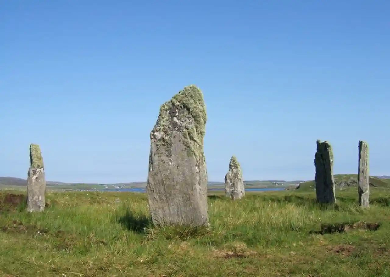 The Callanish IV stone circle () is one of many megalithic structures around the better-known (and larger) Calanais I on the west coast of the Isle of Lewis, in the Outer Hebrides (Western Isles), Scotland. It is a scheduled monument and its official name is Sron a'Chail. The site was first surveyed and recorded by RCAHMS in 1914 and again in 2009, with another survey in the 1970s by other archaeologists, but no known archaeological excavations have taken place at the stones. Read more on Wikipedia