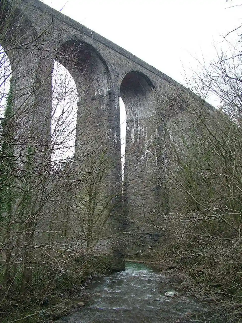 Hengoed Viaduct is a disused railway viaduct located above the village of Maesycwmmer, in Caerphilly county borough, South Wales. Grade II* listed, it was originally built to carry the Taff Vale Extension of the Newport, Abergavenny and Hereford Railway (NA&HR) across the Rhymney River, and is now part of National Cycle Route 47. Read more on Wikipedia