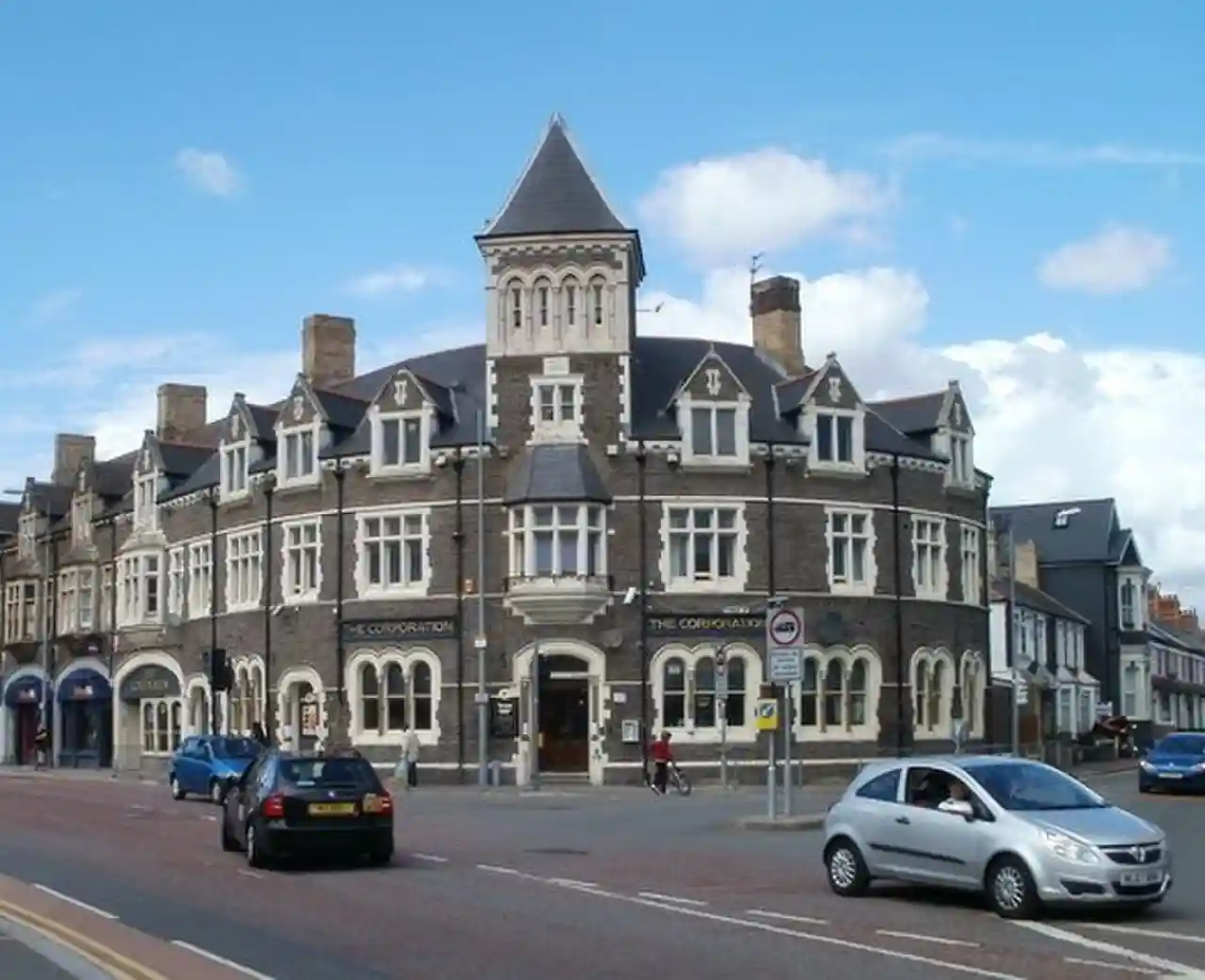 The Corporation, also known as The Corp, is a public house on a prominent corner of the suburb of Canton in Cardiff, Wales. Opened in 1889 it closed as a pub in 2016, re-opening in November 2021 as a space for independent businesses. Read more on Wikipedia