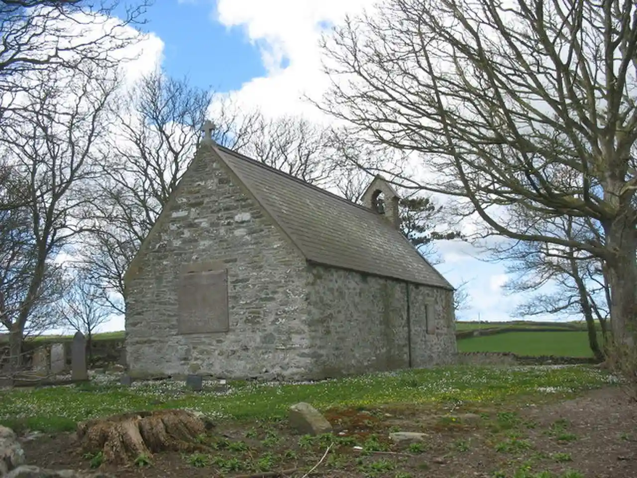 St Peirio's Church is a small disused medieval church, in Rhosbeirio, Anglesey, north Wales. It is unclear when a church was first established on this site, although it has been said that this happened in about 605. The current structure, which may date from the 15th century, has been restored in the 18th and 19th centuries. It ceased being used for services some years ago and has been boarded up. Read more on Wikipedia