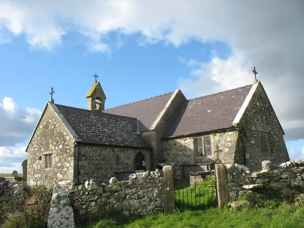 St Peulan's Church, Llanbeulan is a redundant Anglican church in Llanbeulan, in Anglesey, north Wales. The nave, which is the oldest part of the building, dates from the 12th century, with a chancel and side chapel added in the 14th century. The church has a font of early date, possibly from the first half of the 11th century: one historian has said that it would initially have been used as an altar and that "as an altar of the pre-Norman period it is a unique survivor in Wales and, indeed, in Britain". Read more on Wikipedia