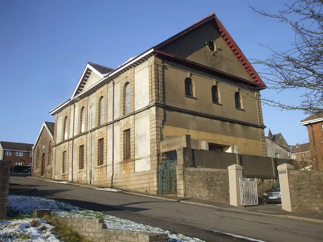 Bethania, Dowlais was a Welsh Independent, or Congregationalist, chapel in South Street, Dowlais, near Merthyr Tydfil, South Wales. The cause was established in 1824 and the chapel rebuilt on several occasions in the nineteenth century. The present chapel dates from 1895 but was vastly enlarged and re-modelled in 1910. The building is Grade II listed. Read more on Wikipedia