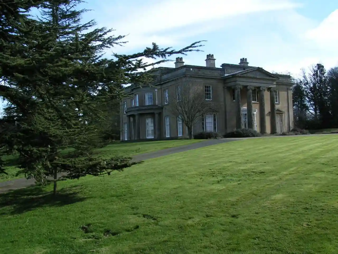Clytha Park, Clytha, Monmouthshire, is a 19th-century Neoclassical country house, "the finest early nineteenth century Greek Revival house in the county." The wider estate encompasses Monmouthshire's "two outstanding examples of late eighteenth century Gothic", the gates to the park and Clytha Castle. The owners were the Jones family, later Herbert, of Treowen and Llanarth Court. It is a Grade I listed building. Read more on Wikipedia
