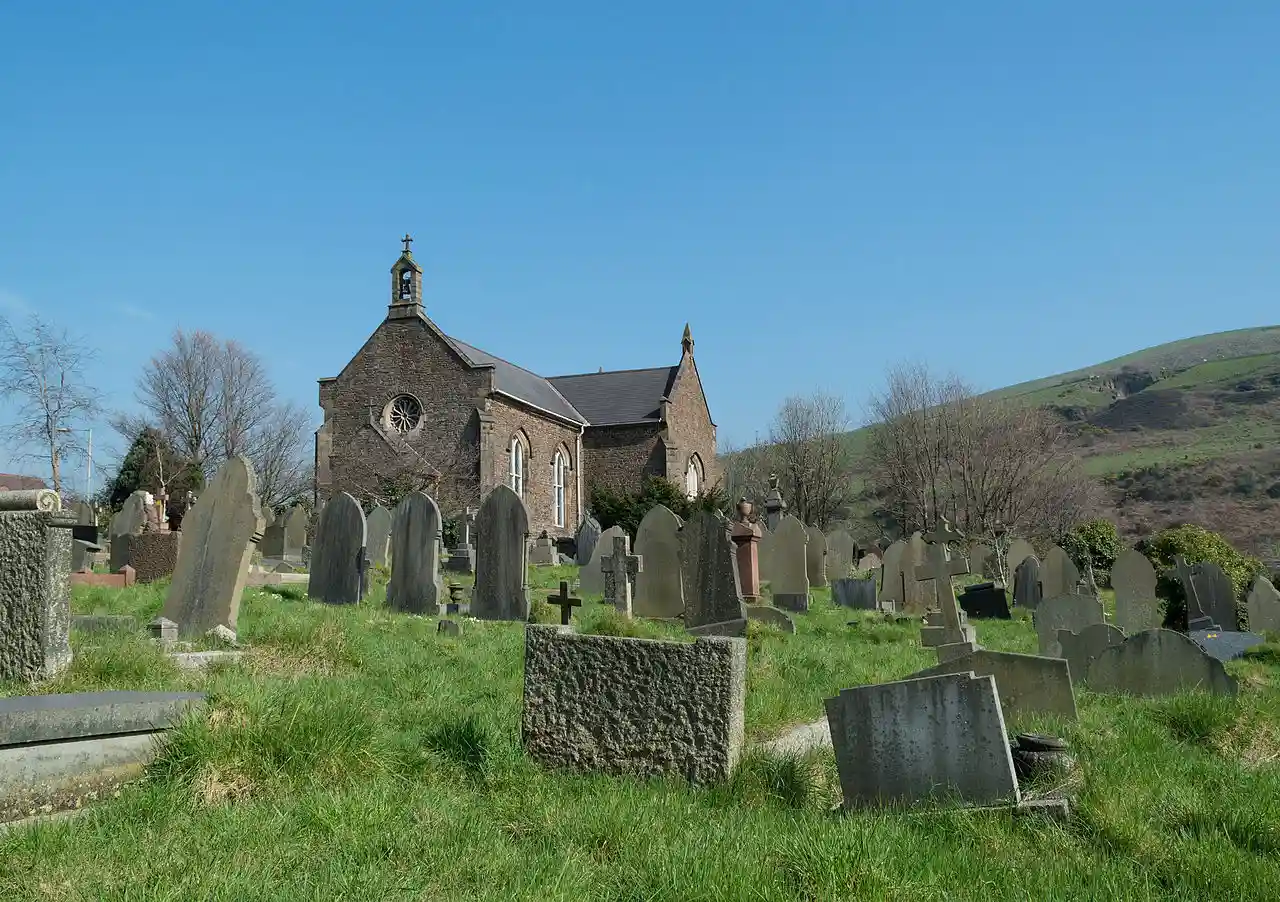 Holy Cross Church, Port Talbot, also known locally as the "Chapel of Ease", is a Victorian church located centrally in the Taibach district of Port Talbot, Wales. Prior to the building of the M4 motorway flyover through the centre of the town in the 1960s, it was in the centre of a residential area, but it is now dominated by junction 40 of the motorway. The land was originally donated by C. R. M. Talbot, MP, the owner of the Margam Abbey estate, as a church for local people who could not get to the abbey itself to worship. Read more on Wikipedia