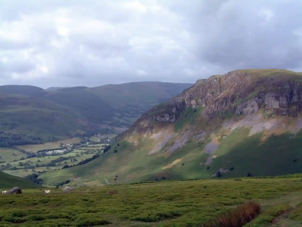Craig Rhiwarth is a mountain in the Berwyn range, in Powys (formerly Montgomeryshire), Wales, overlooking the village of Llangynog to the south. On the summit is an Iron Age hillfort, and there are remains of slate quarrying on the southern slopes. Read more on Wikipedia