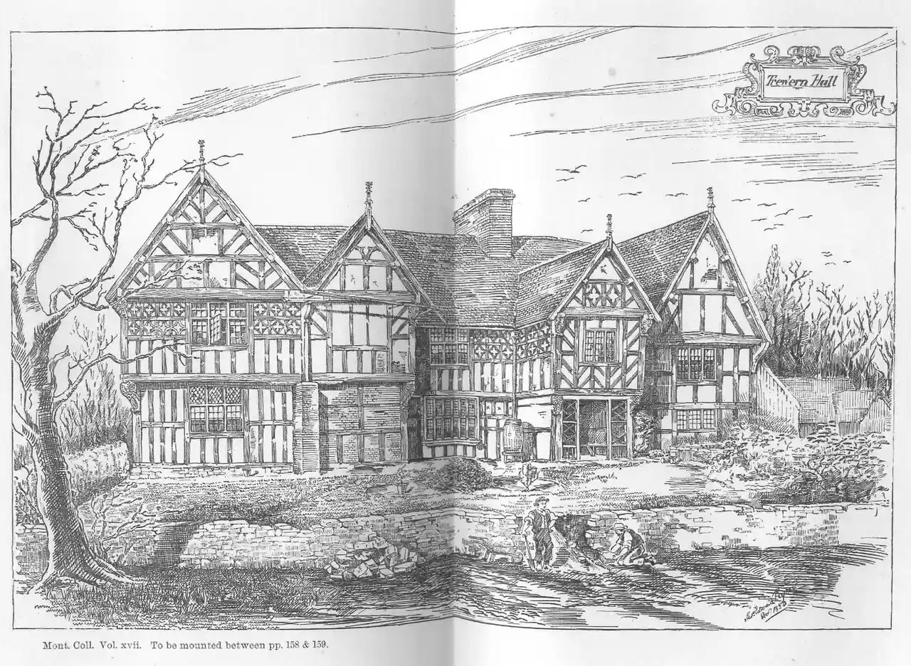 Trewern Hall or Trewern Farmhouse is a country house in Montgomeryshire, Wales, close to the Shropshire border. It is on a spur in the floodplain of the River Severn, in the Trewern community area of what is now Powys, to the north of the A458 road from Shrewsbury to Welshpool. It is a fine example of a Severn valley half-timbered house. The Grade II* listed hall was occupied by the Lloyd, Francis and Whittaker families. In 1985–86 (SW end) and 1993–94 (NE end) it was extensively restored with some remodelling by the architect M. J. Garner for Murray Ll. Chapman. Read more on Wikipedia