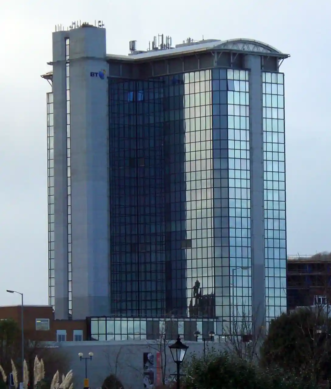The BT Tower () is located near Swansea Castle and is the second tallest building in Swansea after The Tower, Meridian Quay. It has 13 floors and is high. Completed in 1970 by the General Post Office, the BT Group uses it as an office building. Read more on Wikipedia