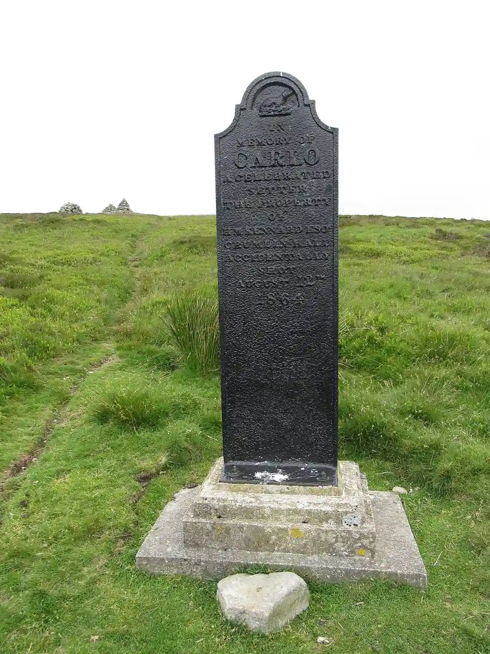 The Dog Stone (or Pillar Stone), on Mynydd Farteg, a subsidiary top of Coity Mountain, near the village of Abersychan, Torfaen, Wales, is a memorial, dating from 1864, to "Carlo", a Red setter. It is a Grade II listed structure. Read more on Wikipedia