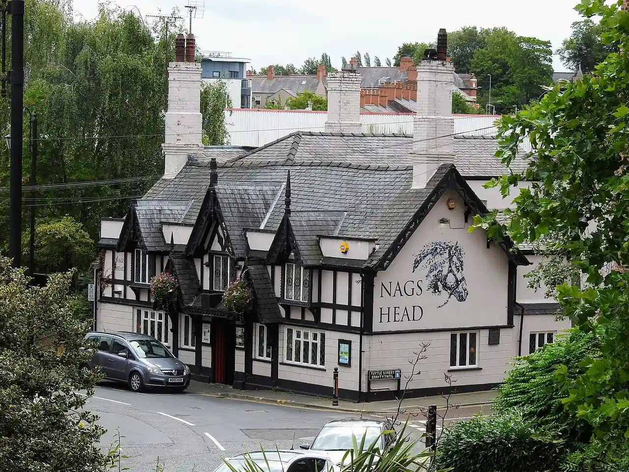 The Nags Head (also spelled Nag's Head) is a historic pub on Mount Street in Wrexham city centre, North Wales. The current frontage dates to a 19th-century remodelling under the Soames family. Read more on Wikipedia
