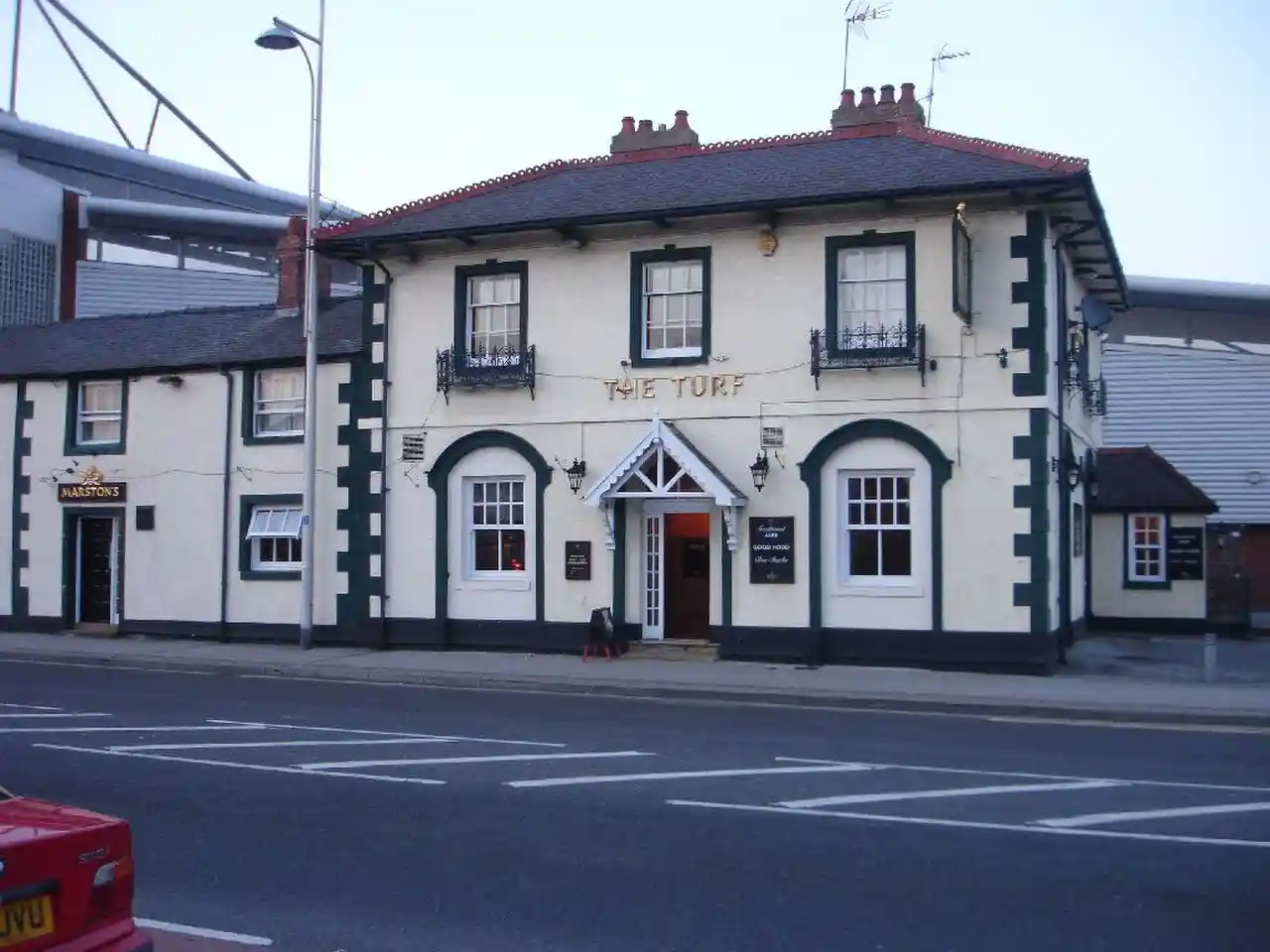 The Turf Hotel, also known as The Turf, is a public house in Wrexham, Wales, located on the corner of Wrexham A.F.C.'s Racecourse Ground, it has been a meeting place for Wrexham's fans for over 150 years. It was the only pub in the United Kingdom to be built inside the grounds of a football club and is now the oldest public house at any sport stadium in the world. Read more on Wikipedia