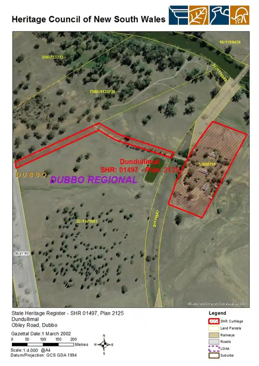Dundullimal Homestead is a heritage-listed former pastoral station and now cultural facility, house museum and events centre. The Australian colonial slab hut-type homestead is located approximately south of Dubbo in the Dubbo Regional Council local government area of New South Wales, on Obley Road, set on the bank of the Macquarie River. The homestead was built in by John Maughan and is also known as Dundullimal. The property is owned by National Trust of Australia, NSW branch. It was added to the New South Wales State Heritage Register on 1 March 2002, and is listed on the (now defunct) Register of the National Estate. Read more on Wikipedia