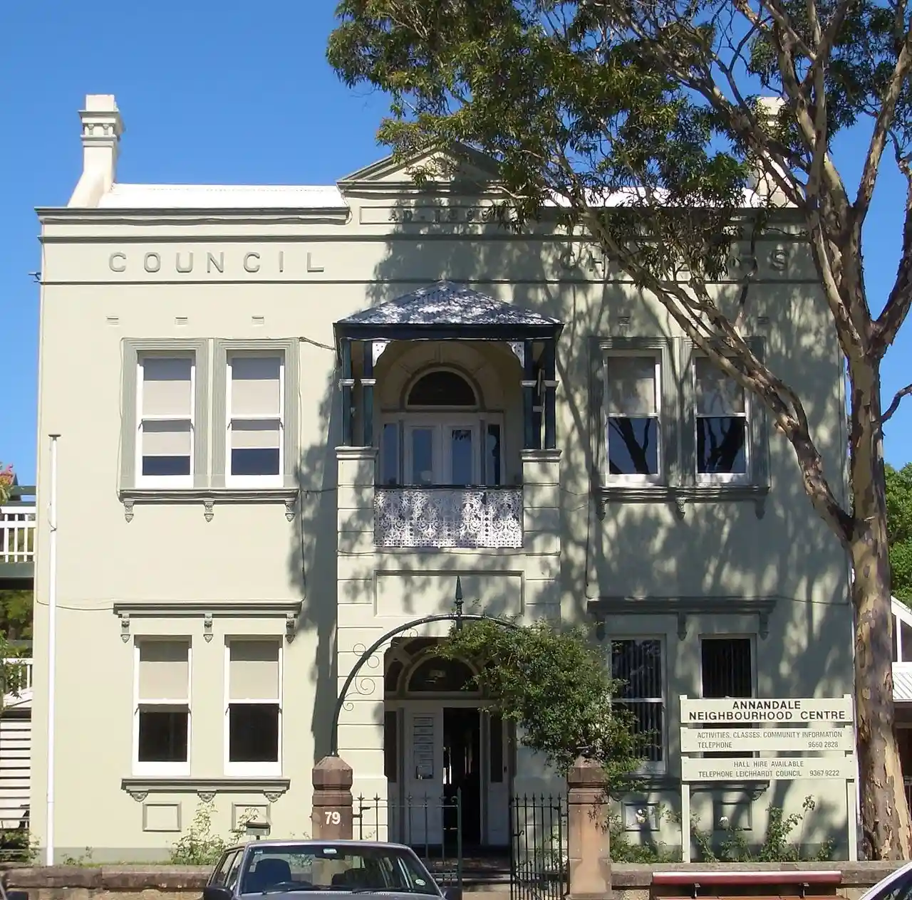The former Annandale Council Chambers is a landmark civic building in Annandale, a suburb of Sydney, Australia. It stands at 79 Johnston Street and was built in 1899 in the Victorian style by architect J. W. Richards. The council chambers was the seat of Annandale Municipal Council from 1899 to 1948 when it became a Leichhardt Council depot and since 1980 has been the Annandale Community Centre run by the Inner West Council. It is currently listed on the Leichhardt Local Environmental Plan. Read more on Wikipedia