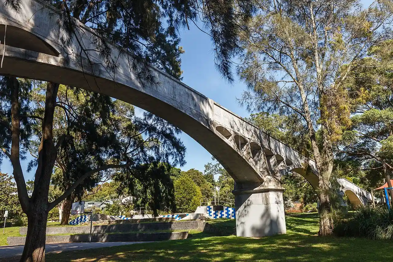 White's Creek Aqueduct is a heritage-listed sewage aqueduct at Piper Street, Lilyfield, Inner West Council, Sydney, New South Wales, Australia. It was designed by engineer William Julius Baltzer of the New South Wales Public Works Department and built by the Department from 1897 to 1898. The property is owned by Sydney Water. It was added to the New South Wales State Heritage Register on 18 November 1999. Read more on Wikipedia