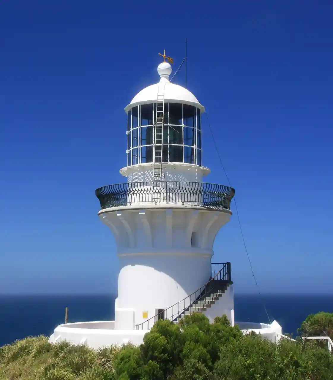 Sugarloaf Point Light, also known as Seal Rocks Lighthouse, is an active lighthouse located on Sugarloaf Point, a point about southeast of Seal Rocks, Mid-Coast Council, New South Wales, Australia. It guards Seal Rocks, a treacherous rock formation to the south. It is the first lighthouse designed by James Barnet, and built from 1874 to 1875 by John McLeod. It is also one of only two towers in Australia with an external stairway. It is also known as Sugarloaf Point Lightstation Group, Seal Rocks Lightstation Complex and Sugarloaf Point Lighthouse. The property is owned by National Parks and Wildlife Service. It was added to the Commonwealth Heritage List on 22 June 2004; on the New South Wales State Heritage Register on 22 February 2019; and on the (now defunct) Register of the National Estate on 10 April 1989. Read more on Wikipedia