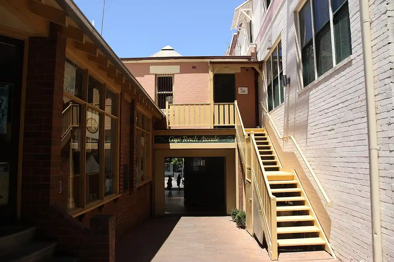 The Captain Tench Arcade is a heritage-listed shops, arcade and restaurant and former residence located at 111–115 George Street, in the inner city Sydney suburb of The Rocks in the City of Sydney local government area of New South Wales, Australia. The 1985 additions to the rear were designed by Kell & Rigby. The property was built in 1920. It is also known as Captain Tench Arcade (since 1985). The property is owned by Property NSW, an agency of the Government of New South Wales. It was added to the New South Wales State Heritage Register on 10 May 2002. Read more on Wikipedia