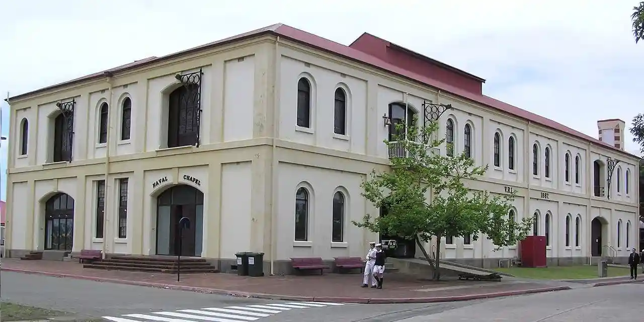 The Garden Island Naval Chapel is a heritage-listed non-denominational Christian chapel located in the heritage-listed Garden Island Naval Precinct that comprises a naval base and dockyard in the inner eastern Sydney suburb of Garden Island in the City of Sydney local government area of New South Wales, Australia. Read more on Wikipedia