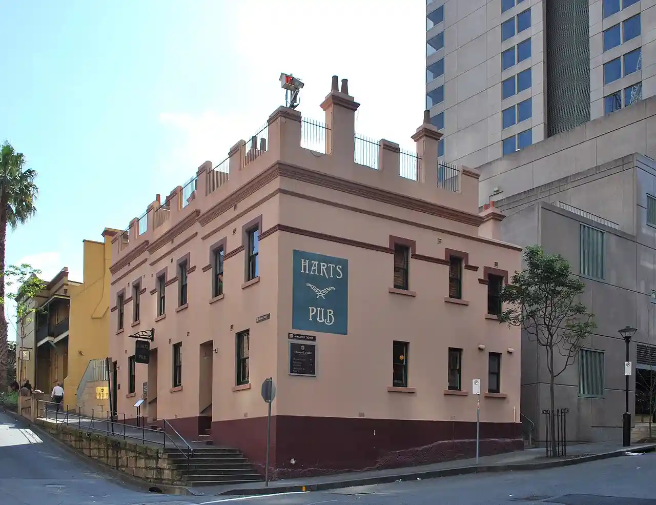 The Harts Buildings is a heritage-listed hotel and pub and former residence, located at 10–14 Essex Street, in the inner city Sydney suburb of The Rocks in the City of Sydney local government area of New South Wales, Australia. It was built from 1890 to 1899. It is also known as Hart's Buildings. The property is owned by Property NSW, an agency of the Government of New South Wales. It was added to the New South Wales State Heritage Register on 10 May 2002. Read more on Wikipedia
